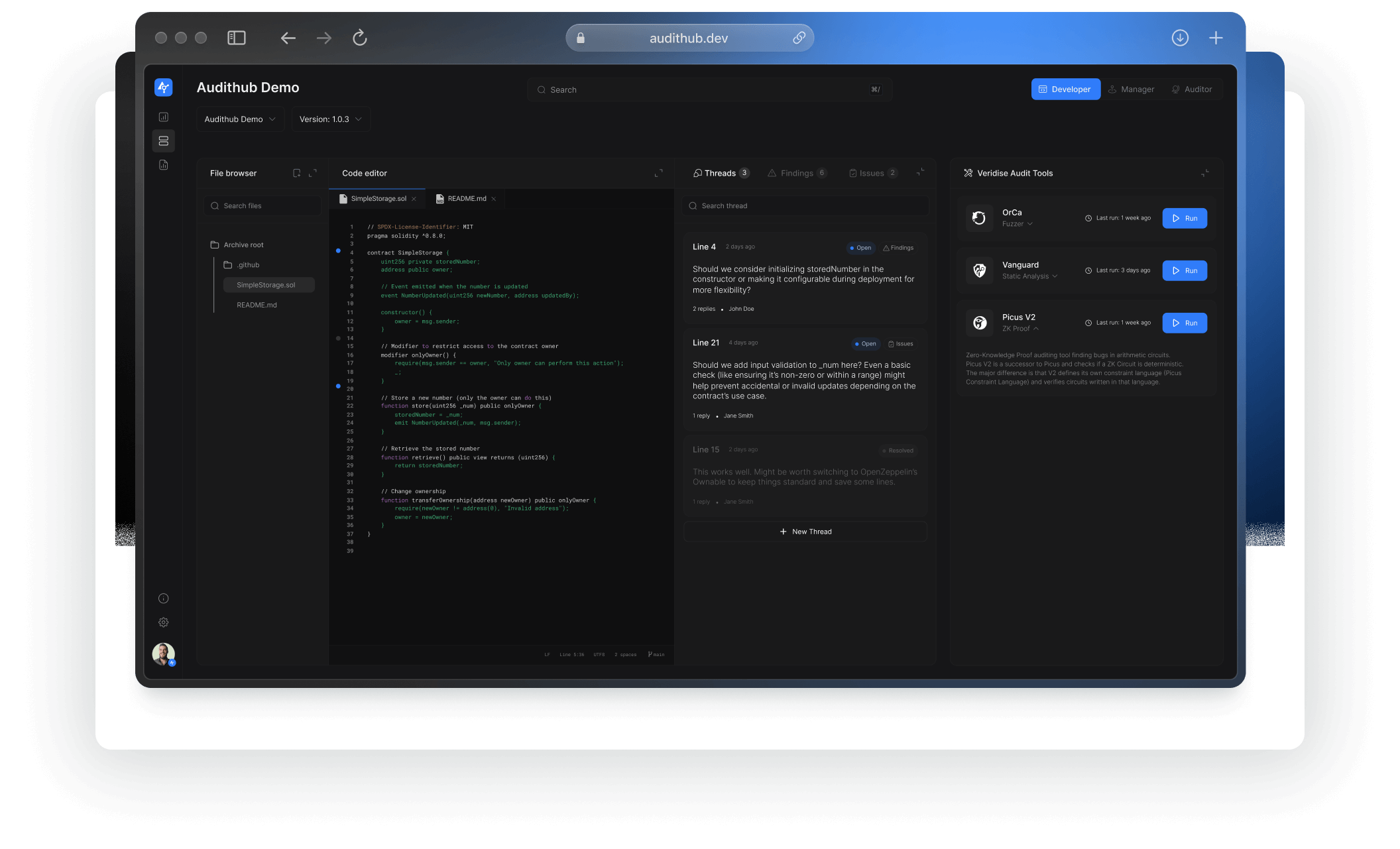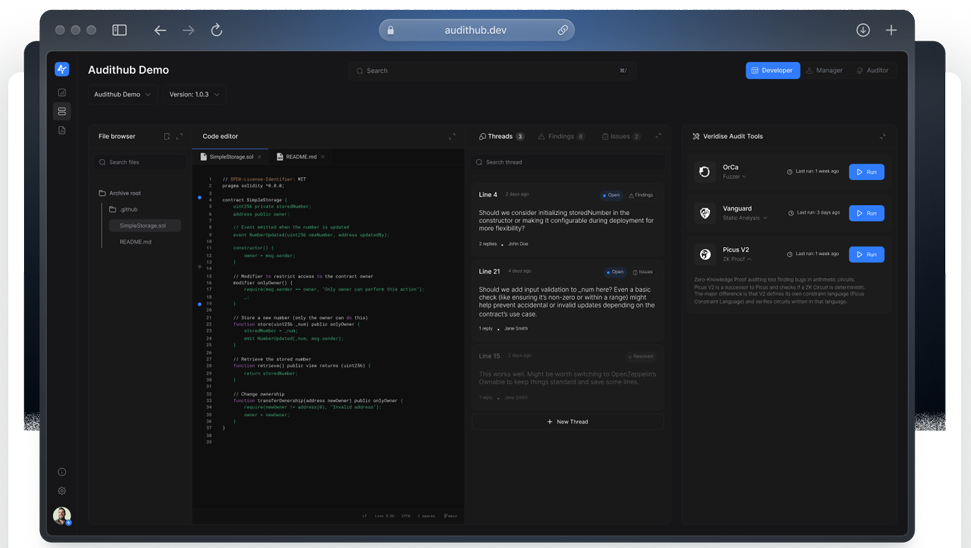 “AuditHub has an amazing tool, Picus, which enables RISC Zero to verify and prove the determinism of our ZK circuits. AuditHub integrated into our CI/CD and performs automated checks while we continue making improvements to our code. Amazing work!”